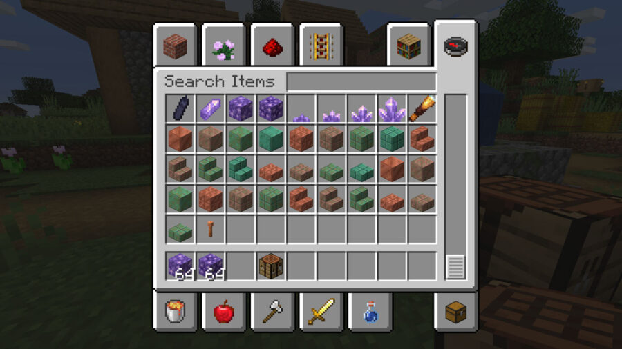 L'améthyste a également été ajoutée, qui peut être trouvée à partir d'amas d'améthystes qui peuvent être situés sous terre dans l'Overworld. Vous pouvez extraire ces derniers, et ils laisseront tomber quatre éclats d'améthyste. Les éclats peuvent être utilisés pour créer du verre teinté, qui est une version plus sombre du verre standard auquel vous êtes habitué. Il ne permet pas non plus à la lumière de le traverser. Vous pouvez également l'utiliser pour créer le Spyglass, qui vous permettra de voir de plus près des choses qui sont loin!