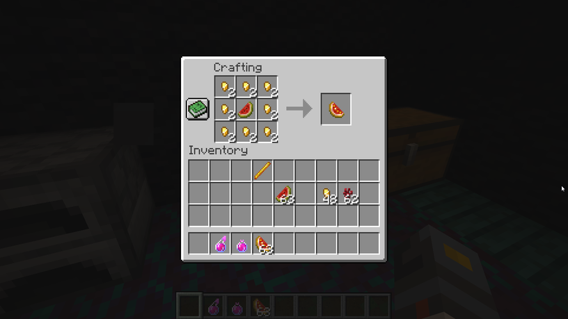 Après avoir reçu des verrues du Néant, vous aurez besoin de tranches de melon pour en faire des melons brillants. Vous pouvez obtenir des tranches de melon en récoltant des plantes de melon. Si vous n'avez pas de melon sous la main, vous pouvez en trouver dans les biomes de la jungle et les villages de savane.
