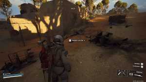 Heureusement, pour la dernière partie de la quête, nous n'avons pas besoin d'aller bien loin. Revenez de la tour Old Raider et retournez vers le hangar de maintenance. Mais au lieu d’y entrer, suivez le chemin à droite de l’entrée (du côté du hangar de maintenance vers le POI de stockage de carburant). Suivez simplement le chemin qui descend de ce côté du hangar et vous remarquerez un désordre sur la route causé par une explosion. Approchez-vous des débris brûlés et vous serez invité à TRANSMETTRE L'EMPLACEMENT.