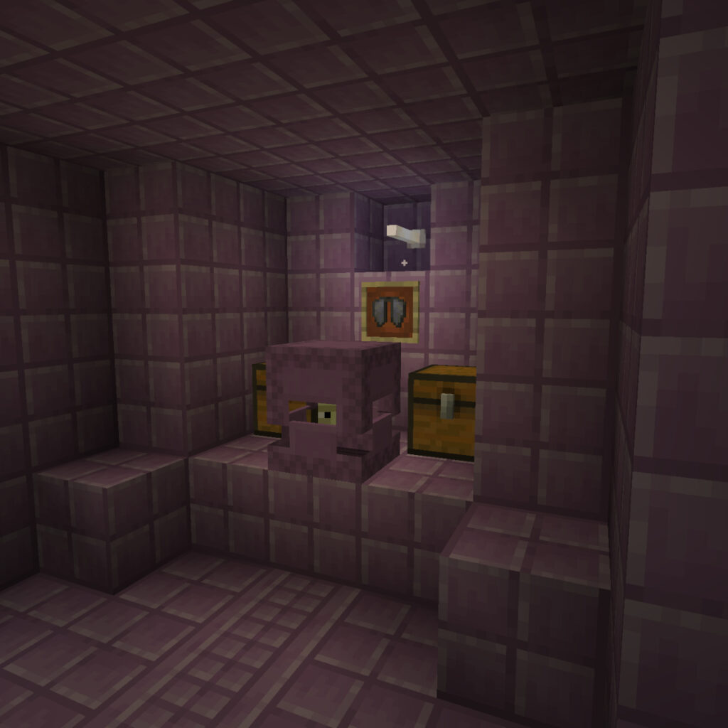 Dans le bateau flottant, vous verrez les Elytres accrochés au mur entre deux coffres. Il est également derrière un Shulker. Sortez le Shulker et prenez votre bien précieux!