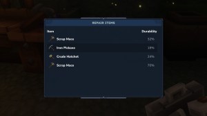 Remarque importante : un seul kit de réparation ne peut être utilisé qu'une seule fois pour réparer entièrement un seul objet, après quoi il est consommé (vous ne l'avez plus). Un article réparé verra sa durabilité maximale réduite jusqu'à 10 % à chaque fois que vous le réparerez.
