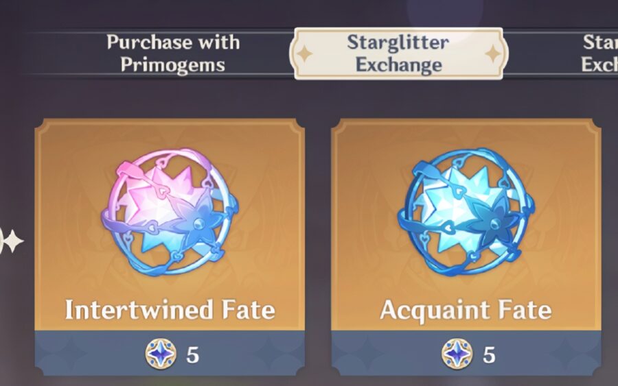 Il existe d'autres types de devises, puis Primogem – Starglitter et Stardust sont les deux autres. Starglitter est le plus rare des trois types et Stardust est le deuxième plus rare. Comment les acquérez-vous, demandez-vous? Eh bien, en faisant des voeux. Chaque souhait que vous faites, vous gagnerez l'une ou l'autre de ces deux devises, et une fois que vous en aurez assez, vous pourrez ensuite les échanger contre Intertwined / Acquaint Fate's, tout comme les Primogems.