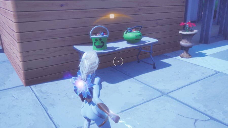 Si vous cherchez des bonbons, vous pouvez les trouver à peu près à n'importe quel endroit nommé sur la carte. Il y aura des seaux sur le sol et devant des maisons sur des tables comme celle-ci à Lazy Lake: