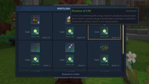 L'Essence de vie est un objet qui tombe généralement lors de la collecte de plantes. Il s'agit d'une monnaie du jeu qui peut être échangée contre diverses ressources achetées auprès d'un vendeur PNJ appelé Rootling Merchant.