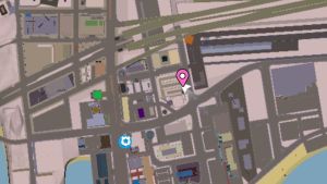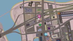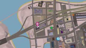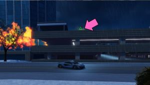 Depuis la caserne des pompiers, descendez l'avenue Xavier jusqu'à atteindre le bâtiment en feu. À côté se trouve un parking, hébergeant un autre elfe de l'Empire au volant. Si vous tournez le coin, vous pouvez voir le triangle indiquant où il se trouve, mais revenez jusqu'à l'entrée du parking.