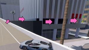- Sautez le rebord, puis faites apparaître une voiture pour ne pas parcourir toute cette distance à pied.