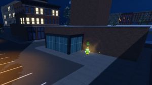 Sortez du chantier et descendez l'avenue Delacroix. Descendez jusqu'au pont, mais tournez à droite avant de le traverser. Continuez jusqu'à ce que vous atteigniez le coin de Park Avenue et Carter Street. Vous reconnaîtrez que vous êtes là grâce au bonhomme de neige dans le parc à votre droite. À partir de là, procédez comme suit :