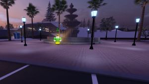 Téléportez-vous au concessionnaire, puis traversez la rue jusqu'au Racing Hub. Il y a un autre elfe sur le parking à gauche. Cherchez simplement une fontaine et vous la repérerez !