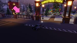 Rendez-vous maintenant dans la zone événementielle du Driving Empire Winterfest. Vous pouvez trouver le téléporteur juste devant le concessionnaire. Il y a un total de quatre elfes dans cette zone que nous devons obtenir pour obtenir le traîneau d'hiver Driving Empire !