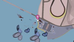 - Une fois sur place, dirigez-vous vers le parking, et vous verrez l'Elfe entre le Phare et la petite maison.