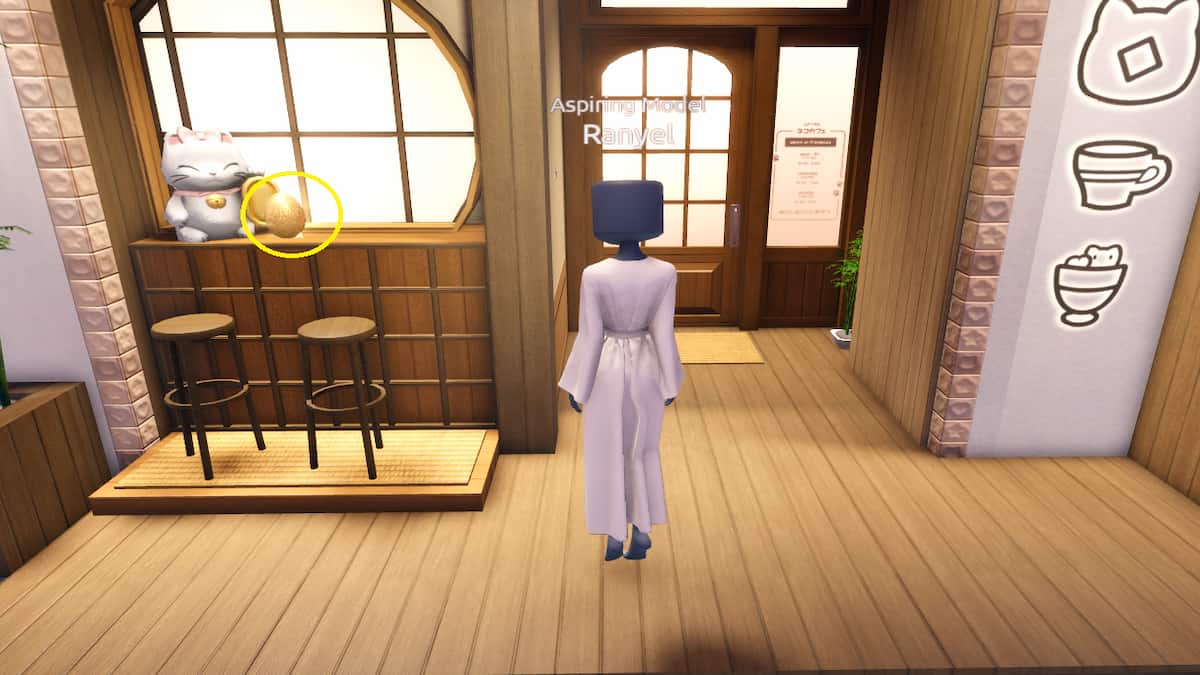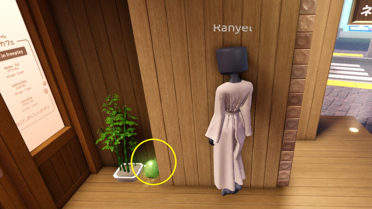 Il y a un œuf de Pâques bleu sur le haut-parleur à côté de la scène. Ceci est adjacent au Cat Cafe et vous pouvez atteindre l’emplacement en prenant à droite depuis votre point d’apparition par défaut.
