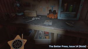 Avant de partir chercher le nouveau Grabpack dans Poppy Playtime Chapitre 5, vous pouvez d'abord explorer sa chambre pour prendre quelques notes. Le premier « Giblet's Checklist » est sur son lit, tandis que le second « The Better Press, Issue 14 » est sur sa table de travail.