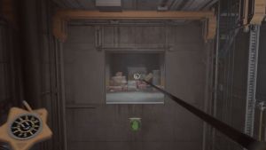 Maintenant, revenez en arrière et utilisez la main de pression pour pousser le chariot jusqu'à l'arrière. De l'autre côté il y a une porte verrouillée, mais aussi un évent que vous pouvez briser en utilisant la main de pression dessus (tous les évents ne sont pas cassables, mais vous pourrez distinguer visuellement lesquels vous pouvez). Sautez et vous vous retrouverez dans une cage d'ascenseur.